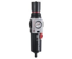 Filtro/Regulador, 1/2 NPT, vaso metálico, dren automático, 5µ (micrones), rango de ajuste 4 a 145 psi, con manómetro, con alivio, Pmax 290 psi, IMI Norgren.